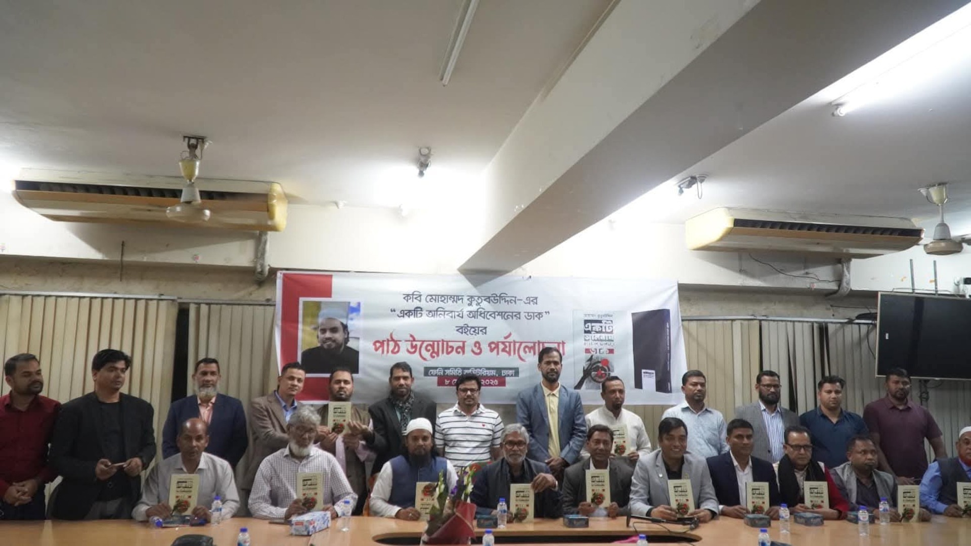 The book unveiling and review event for Ekti Onibarya Odhiveshoner Dak by poet Mohammad Kutubuddin was held on Saturday, February