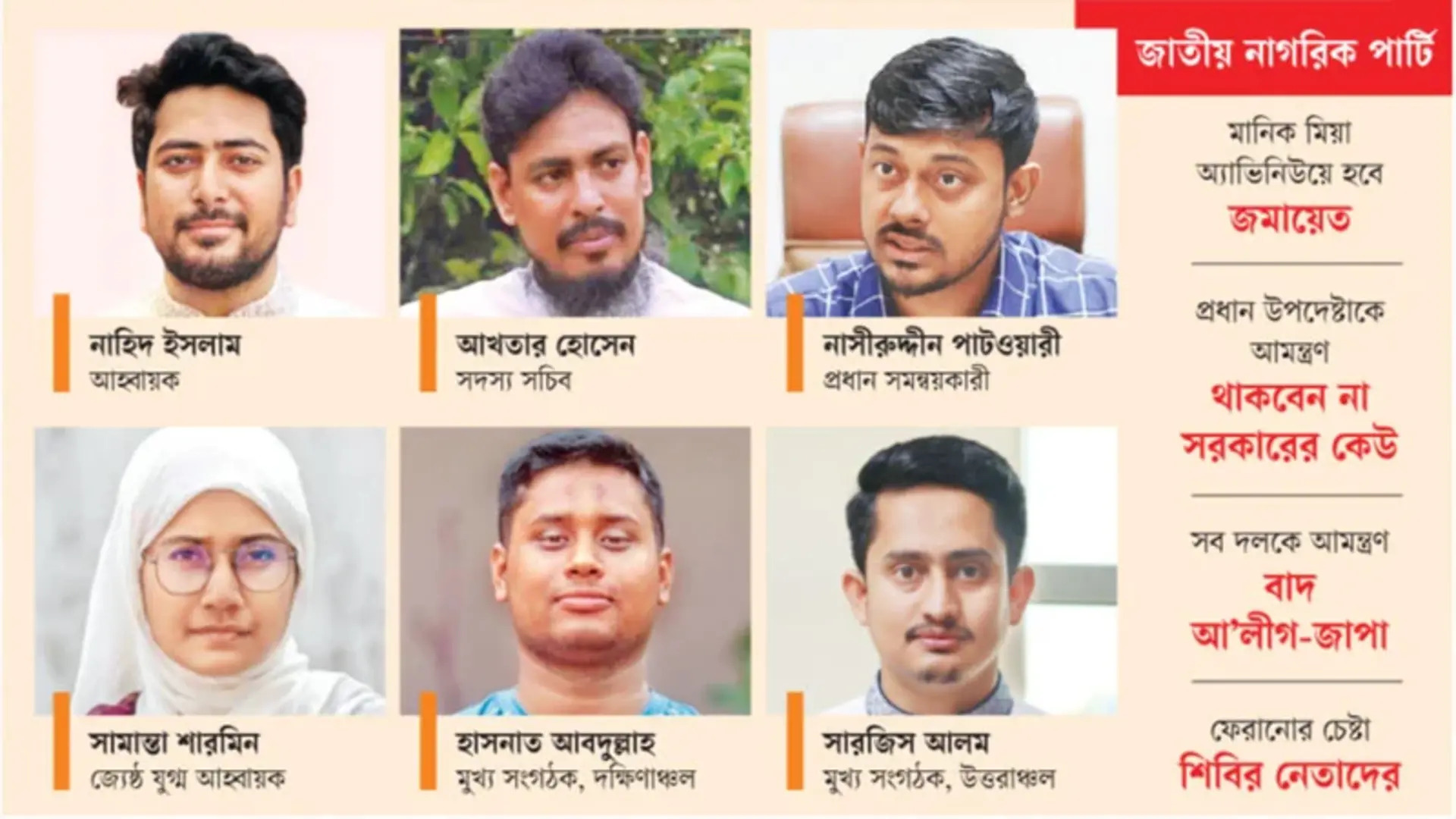 The newly emerging political party, Jatiyo Nagorik Party, has finalized its top 10 leadership positions. Among these, there will be